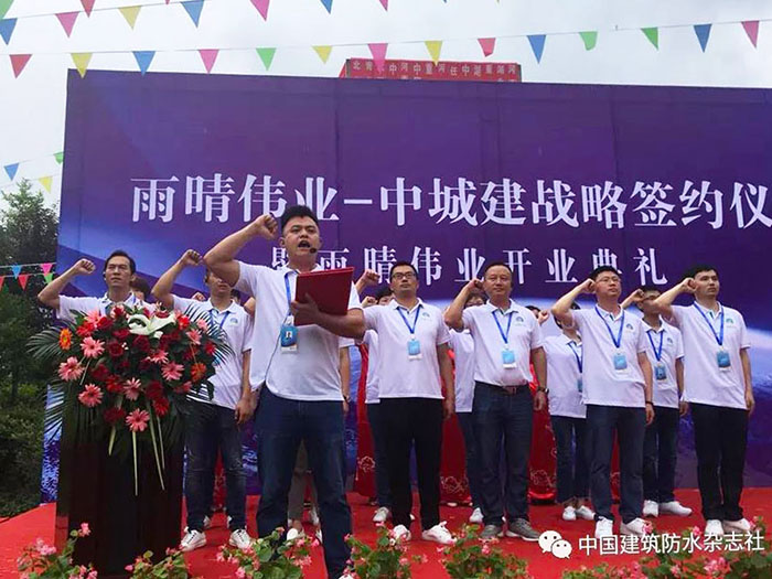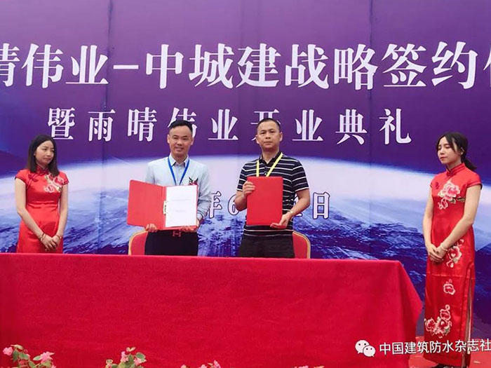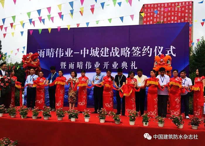 2018年6月21日, 湖北雨晴偉業(yè)防水技術發(fā)展有限公司開業(yè)慶典暨中城建戰(zhàn)略簽約儀式活動現(xiàn)場賓客云集,人頭攢動,場面火爆、掌聲如雷。這標志著雨晴偉業(yè)從今天起正式的面向大眾,面向市場,也意味著雨晴偉業(yè)工廠的正式運營。